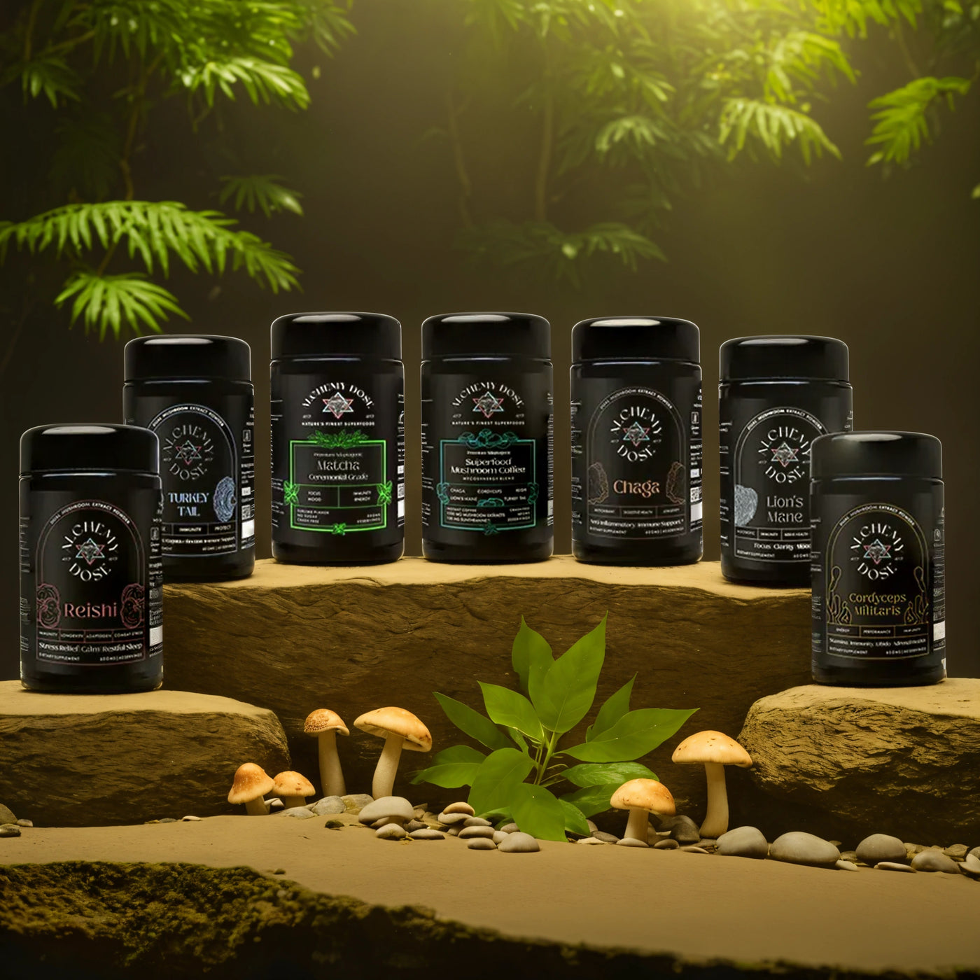Alchemy Dose products such as Mushroom Coffee and Matcha feature the proprietary Mycosynergy Blend, with Scientifically Proven Ingredients which enhances the bioavailability and effectiveness of the mushroom extracts, ensuring customers receive maximum health benefits.