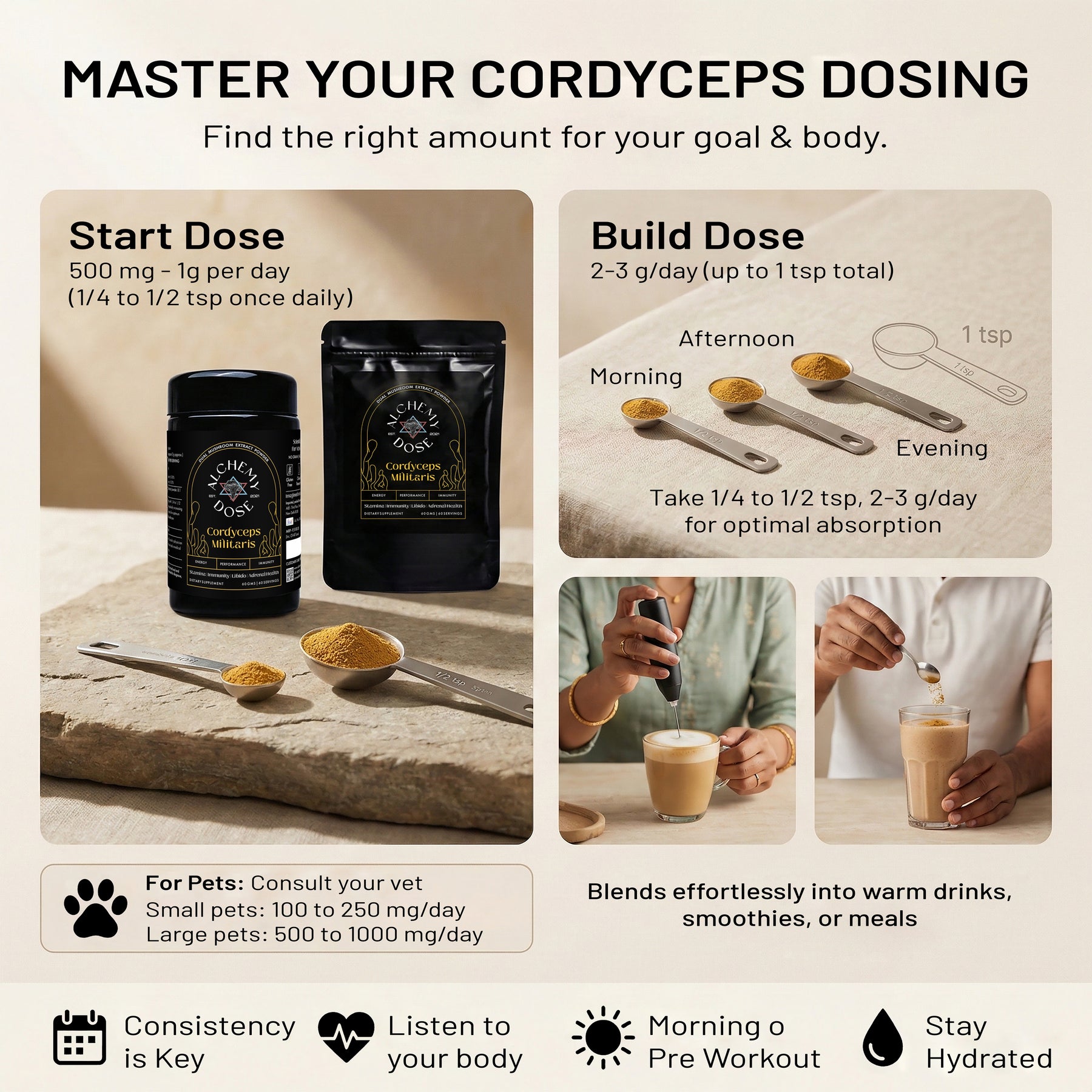To get the best texture and taste from your mushroom coffee, matcha, or extract powder, proper mixing is key.