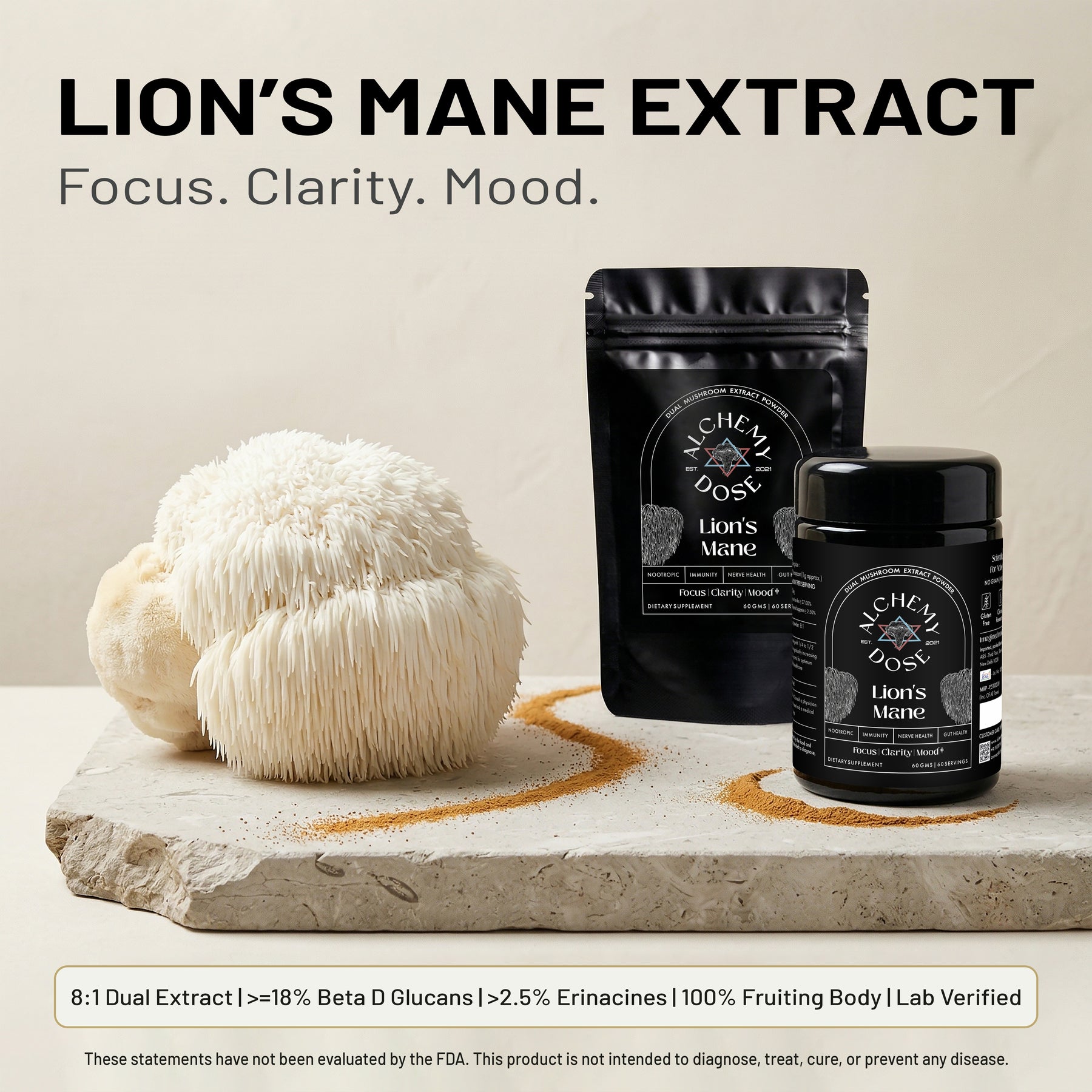 Lion's Mane extract is made through a process called dual extraction, which uses both hot water and alcohol to pull out its bioactive compounds. Hot water extraction draws out beta-glucans, the key water-soluble polysaccharides, while alcohol extraction isolates compounds like hericenones and erinacines, which are among the most studied compounds in functional mushroom research.