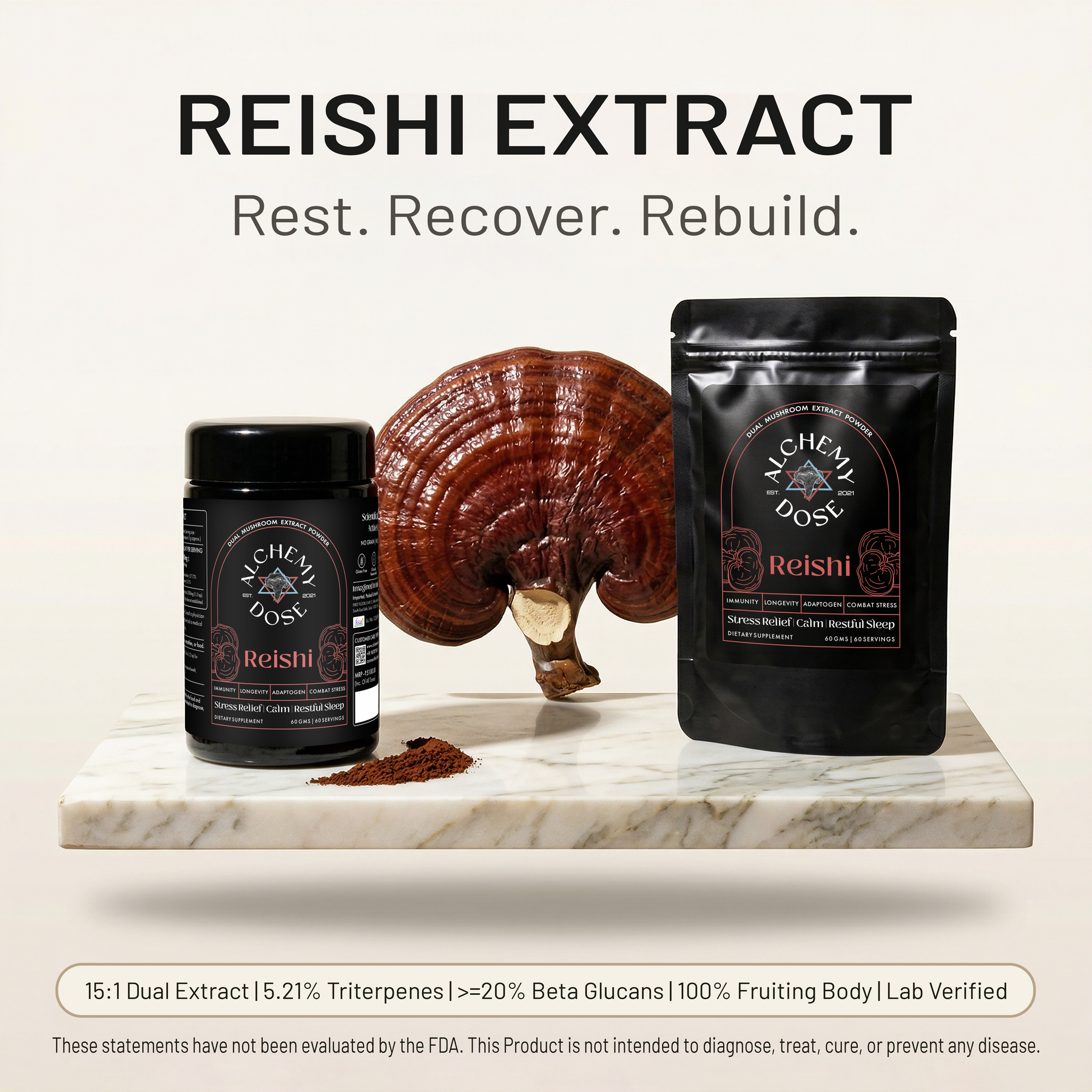 Reishi is one of the most revered functional mushrooms in the world. Known as the "Queen of Mushrooms" and the "Mushroom of Immortality", it has been valued for centuries in traditional wellness practices to support everyday vitality and balance.